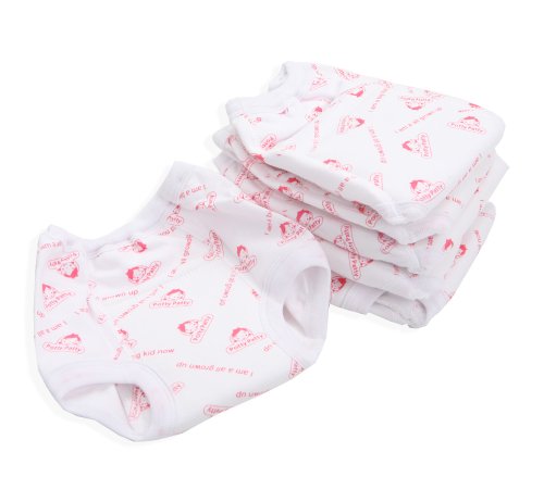 The potty pants feature breathable side panels, wide rib leg bands for a comfortable fit and a center panel with fiber sponge for super absorbency.
